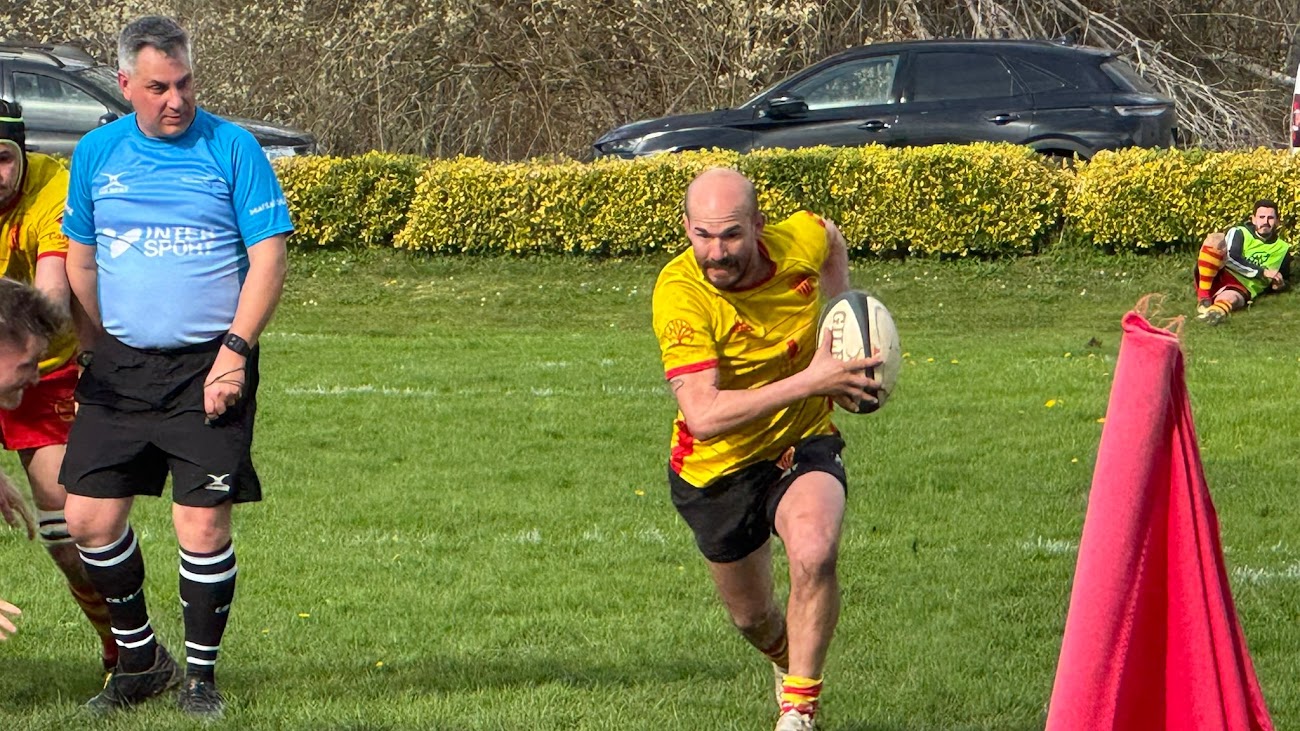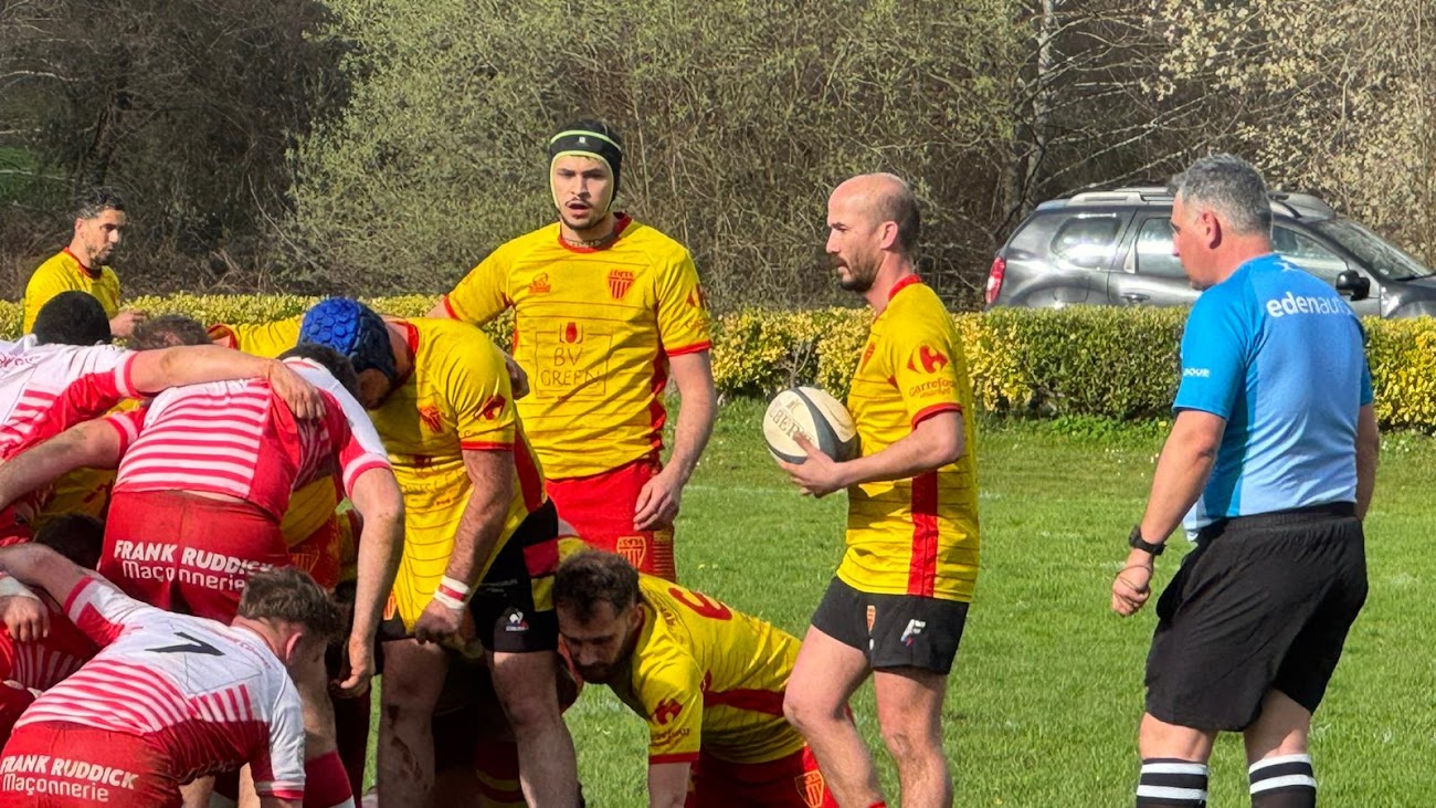 Sous le soleil, entre deux giboulées, la Réserve est contrainte de jouer à 10 en raison du manque d’effectif de son adversaire. Elle se fait déborder dès les premières minutes du match par Gabaret qui inscrit son 1er essai transformé (0/7) puis très rapidement un deuxième (0/14) puis un troisième (0/21). Les Rouge et Jaune réagissent avec C. TILLOS qui marque le 1er essai des locaux, transformé par Mathis CHARBONNIER-MARCOS (7/21). Malheureusement sur la relance, Gabaret reprend possession du terrain et inscrit un 4ème essai transformé. (7/28). Dans les minutes qui suivent, c’est au tour de Mathieu LEROY de réduire le score avec l’appui du pied de Mathis CHARBONNIER ramenant le score à la mi-temps à 14/28 en faveur de Gabaret.
