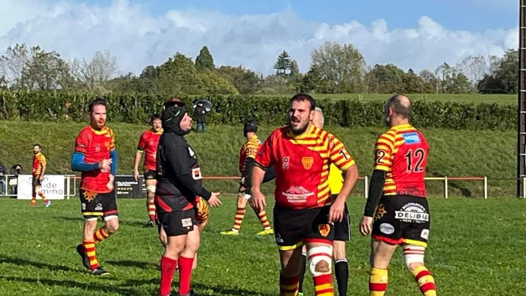 L’équipe première quant à elle se doit d’affronter cette équipe de Pompadour invaincue à ce jour, et on comprend rapidement que cette place de leader invaincu n’est pas usurpée puisque dès la première minute le numéro 13 corrézien transperce la défense cypriote et marque un un très bel essai transformé par le numéro 15, on joue à peine depuis une minute, un grand coup de froid plane sur le stade de Beaumont. Heureusement dès l’engagement les locaux répliquent et le jeune Théo Balat pointe à son tour un très bel essai transformé par Greg, 7 à 7, on est à la 2 ième minute de jeu. A la 5ième Pompadour bénéficie d’une pénalité que transforme son numéro 15, 10 à 7 , puis 10 à 10 à la 10 ième suite à un hors jeu des visiteurs sanctionné et transformé par Greg. On comprend rapidement que cette équipe de Pompadour n’occupe pas la première place par hasard car elle enchaine les actions et finit par marquer à nouveau à la 20 ième, nouvel essai transformé pour les visiteurs, 10 à 17. On approche de la mi temps et les locaux se mettent à nouveau à la faute le numéro 15 visiteur ne rate pas la cible 10 à 20, c’est le score à la mi-temps.